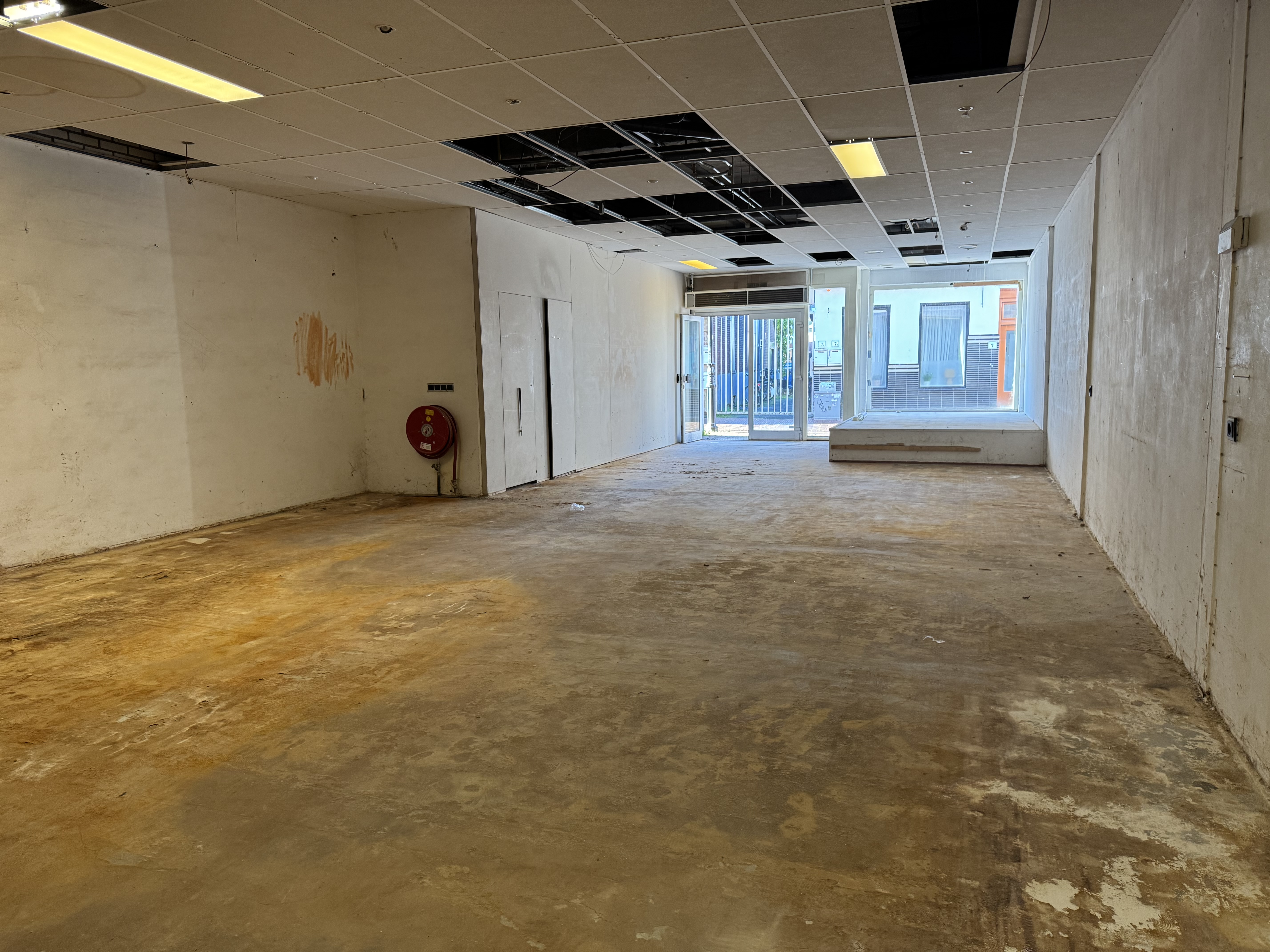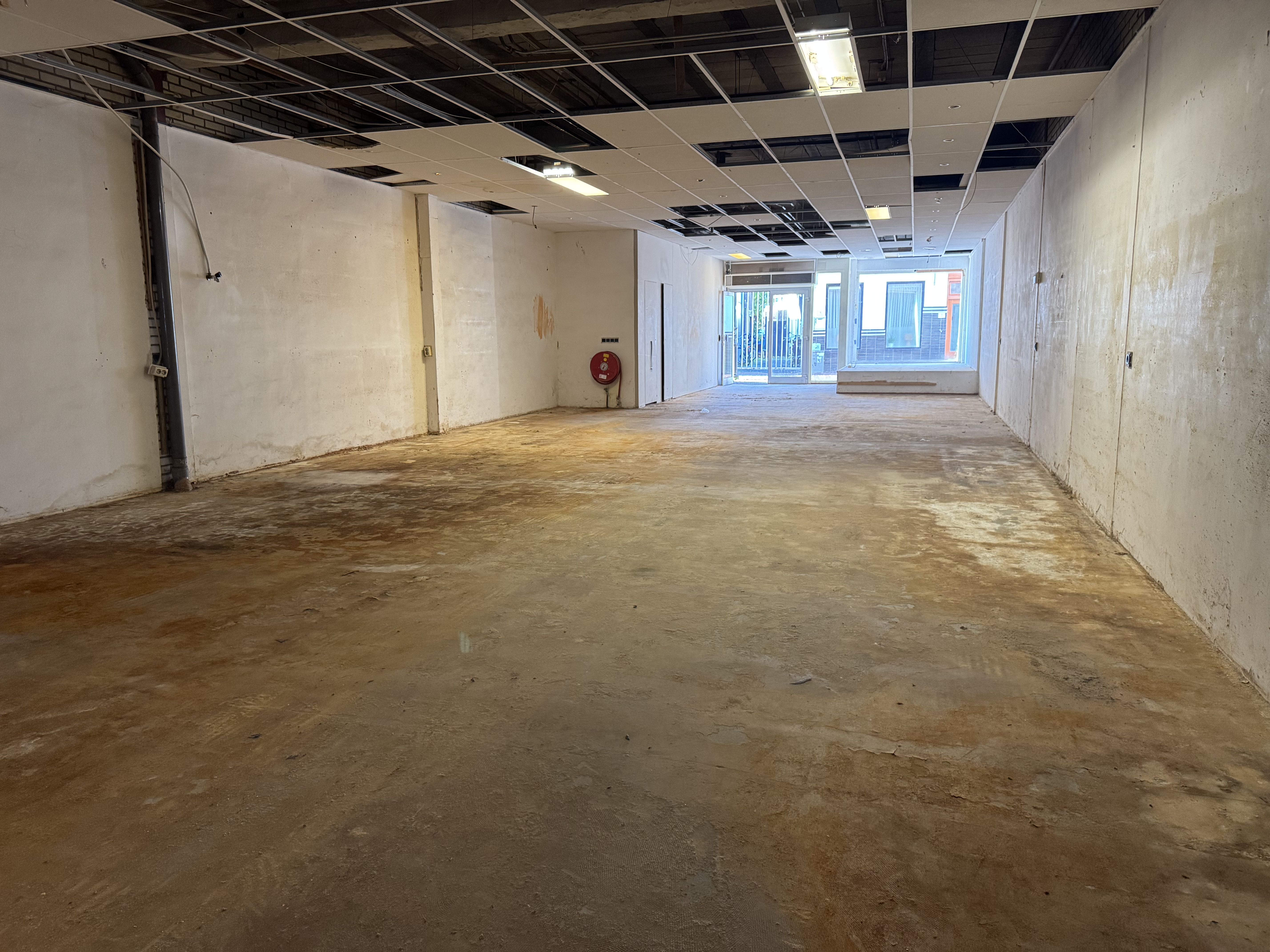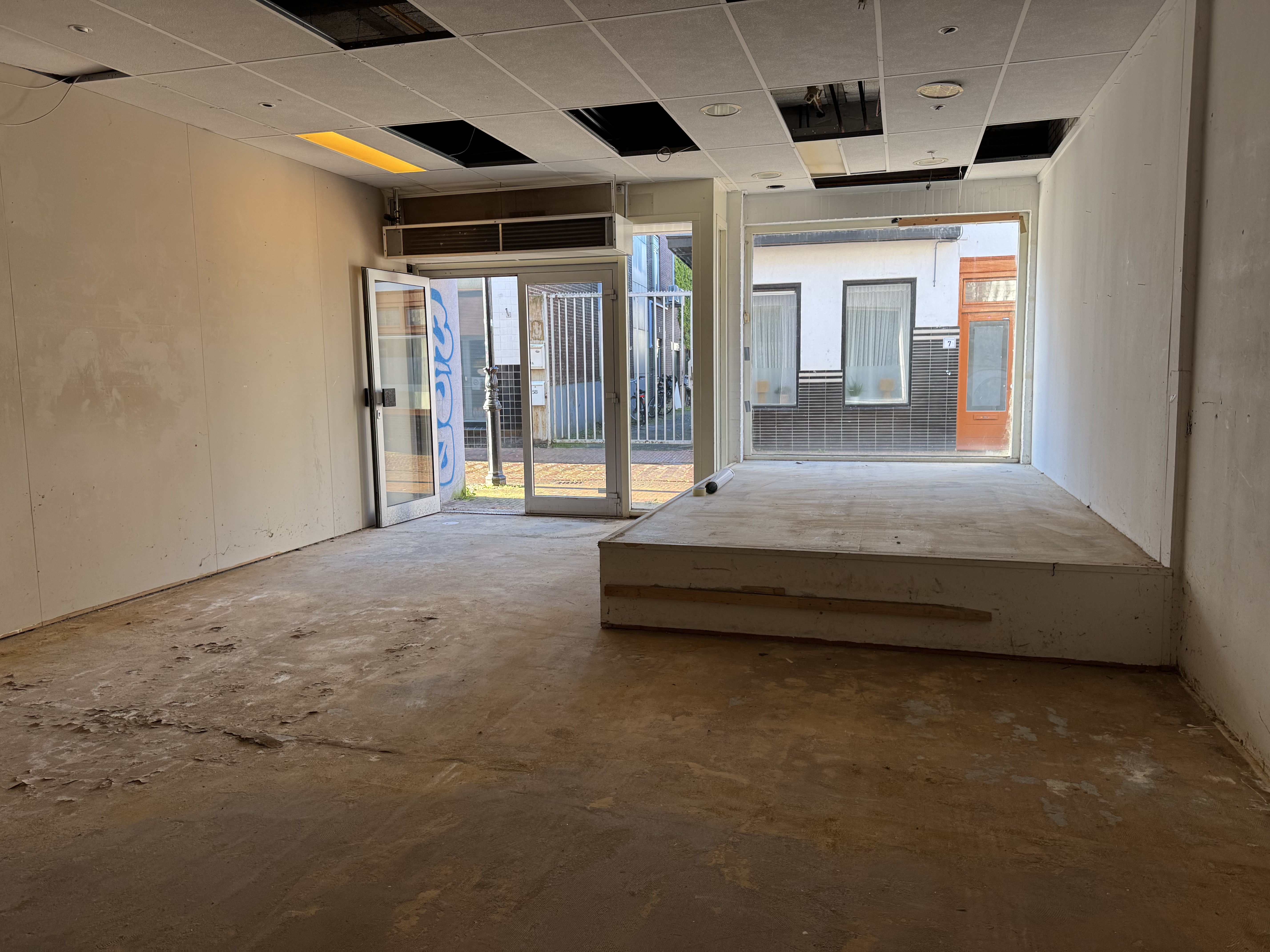 Deze winkelruimte beschikt over ongeveer 100 m² vloeroppervlak. Aan de achterzijde van het pand bevinden zich een pantry en sanitaire voorzieningen.