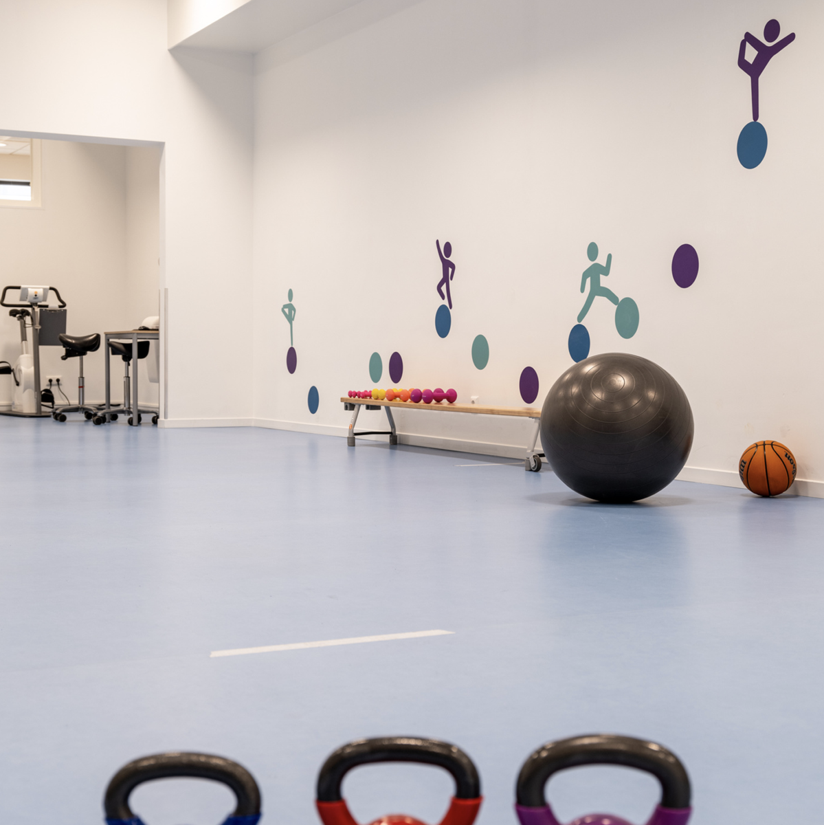 - Volledige transformatie van het interieur: Het interieur is gestript en opnieuw ingedeeld om ruimte te bieden aan behandelkamers, wachtruimtes, overlegkamers en moderne revalidatieapparatuur.