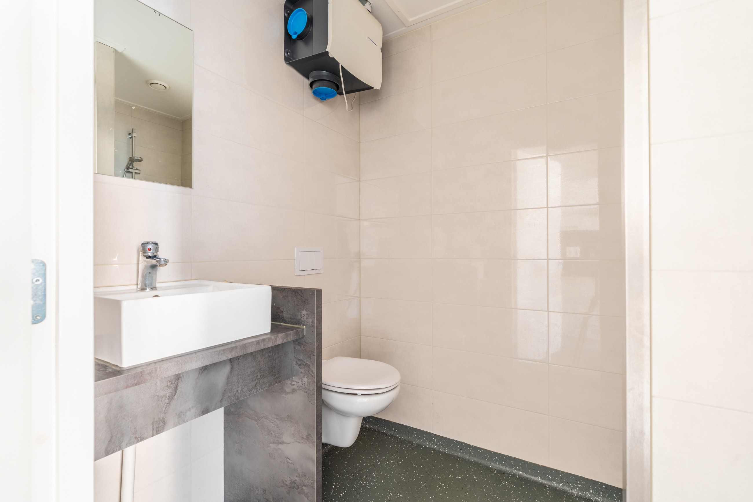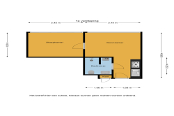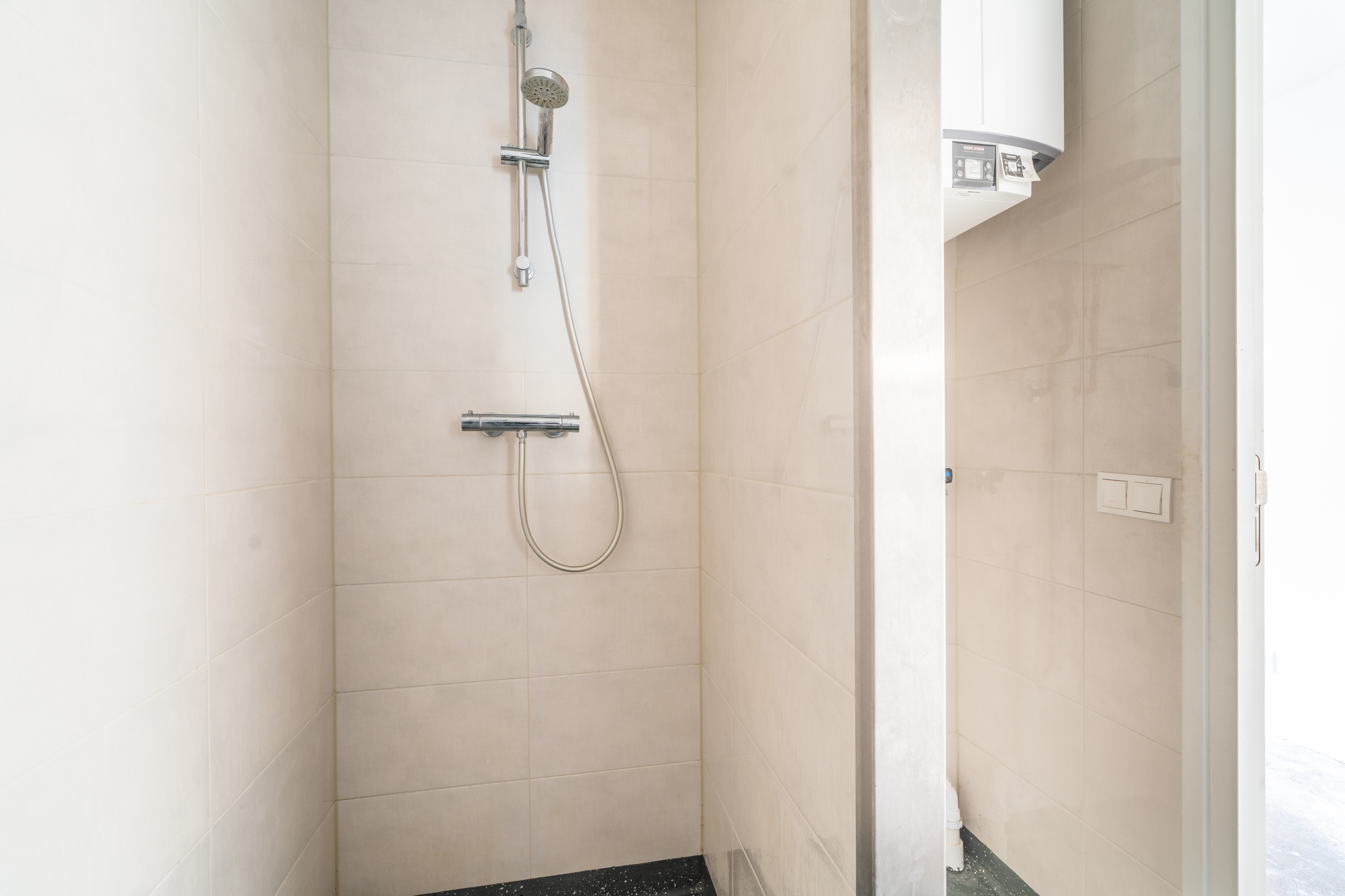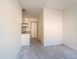 Indeling: entree, badkamer met douche, toilet en wastafel, slaapkamer, woonkamer met open keuken voorzien van koelkast, magnetron, kookplaat en afzuigkap.