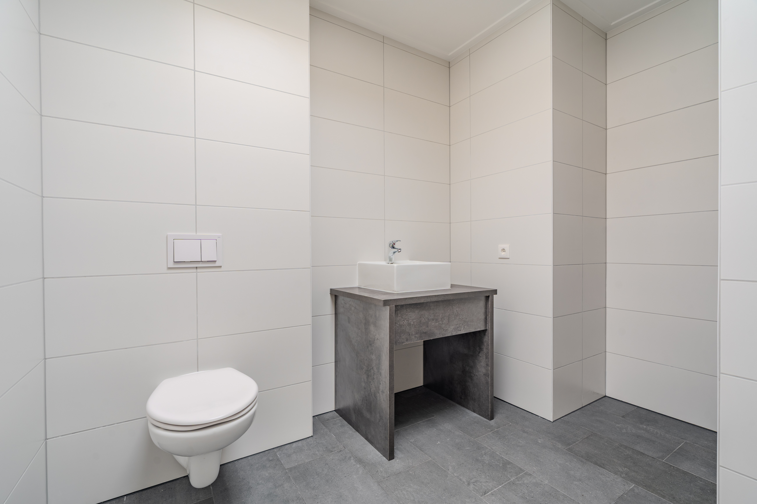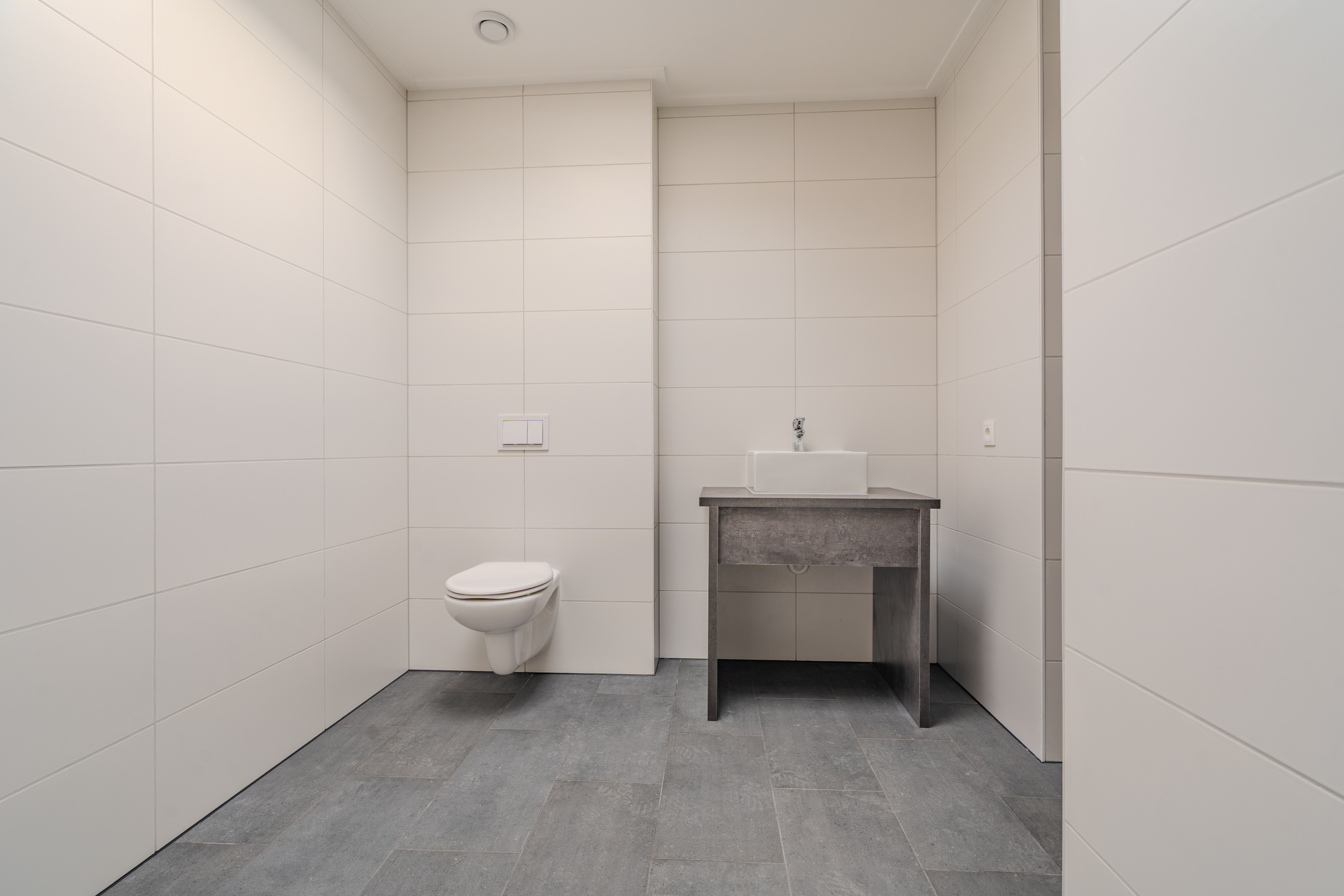 Op de eerste verdieping kom je in de royale en lichte woonkamer met open keuken. Dankzij de grote raampartijen voelt deze ruimte prettig en ruim aan. Vanuit de keuken en hal is er toegang tot het ruime dakterras. Verder vind je op deze verdieping een bijkeuken en een separaat toilet.
