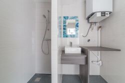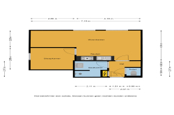 Indeling: entree/hal, toilet, badkamer met douche en wastafel, woonkamer met keuken voorzien van diverse inbouwapparatuur (koelkast, kookplaat, afzuigkap, magnetron) en één slaapkamer.