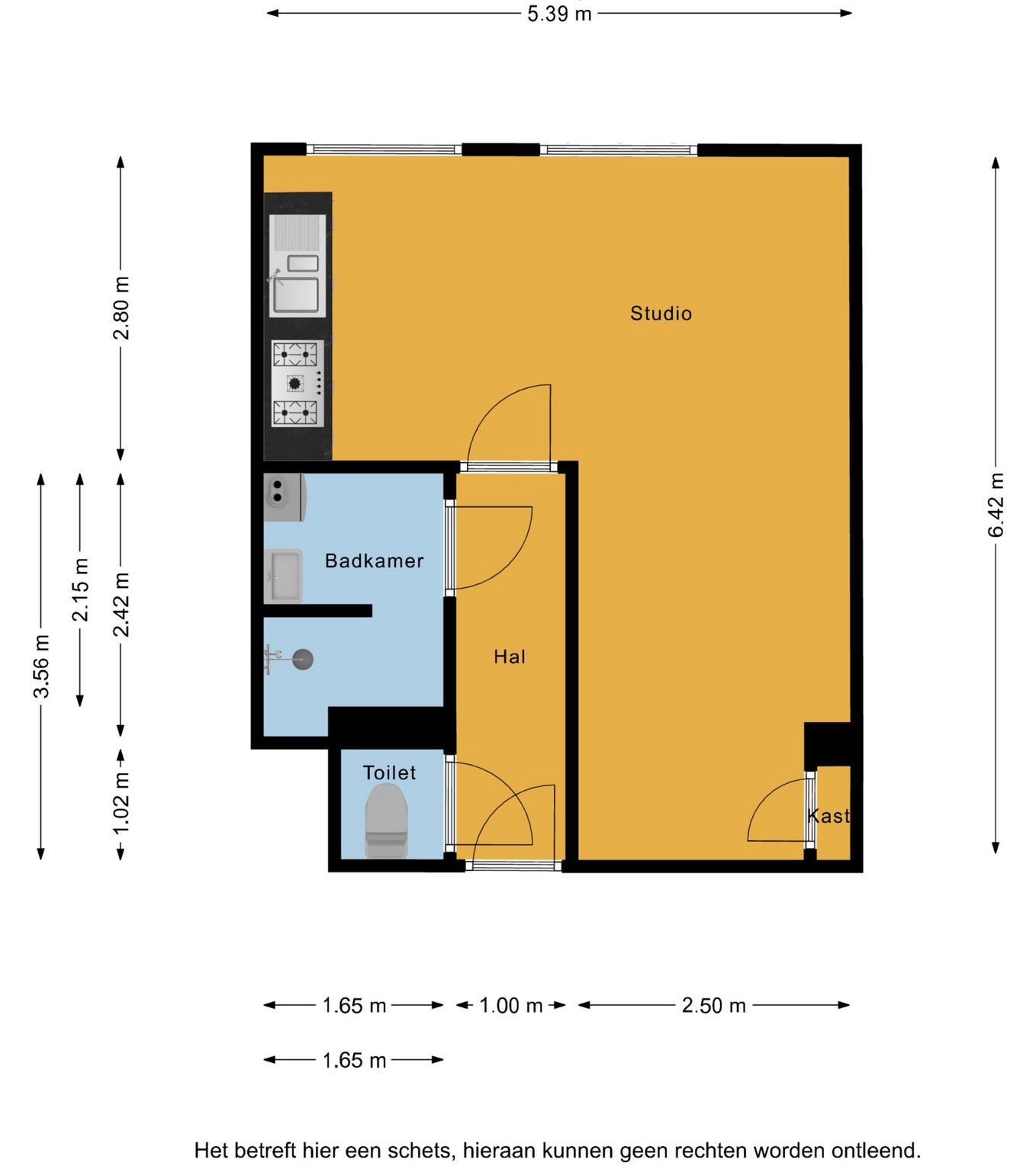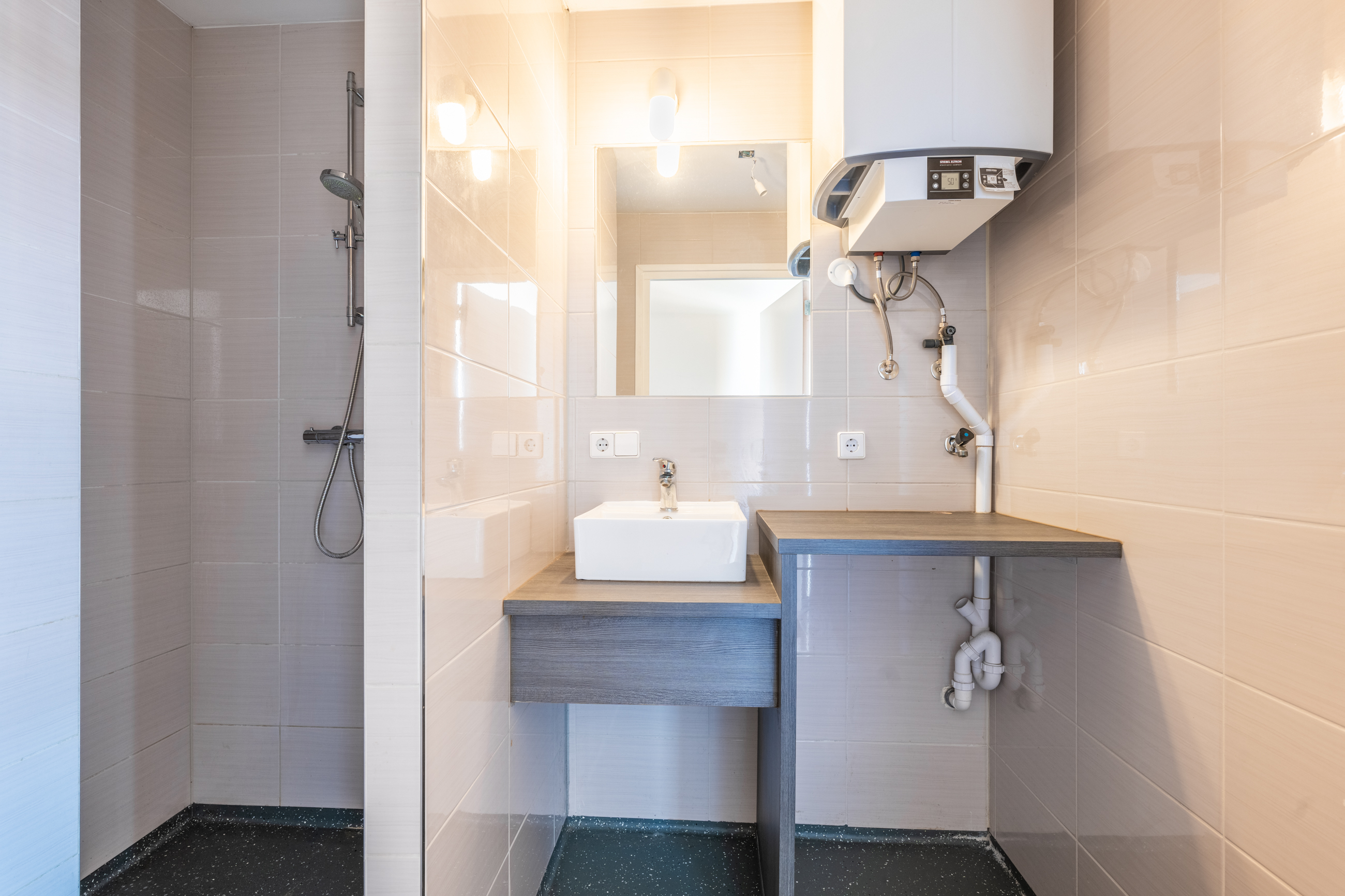 Indeling: entree/hal, toilet, badkamer met douche en wastafel, woon- slaapkamer met open keuken voorzien van diverse inbouwapparatuur.