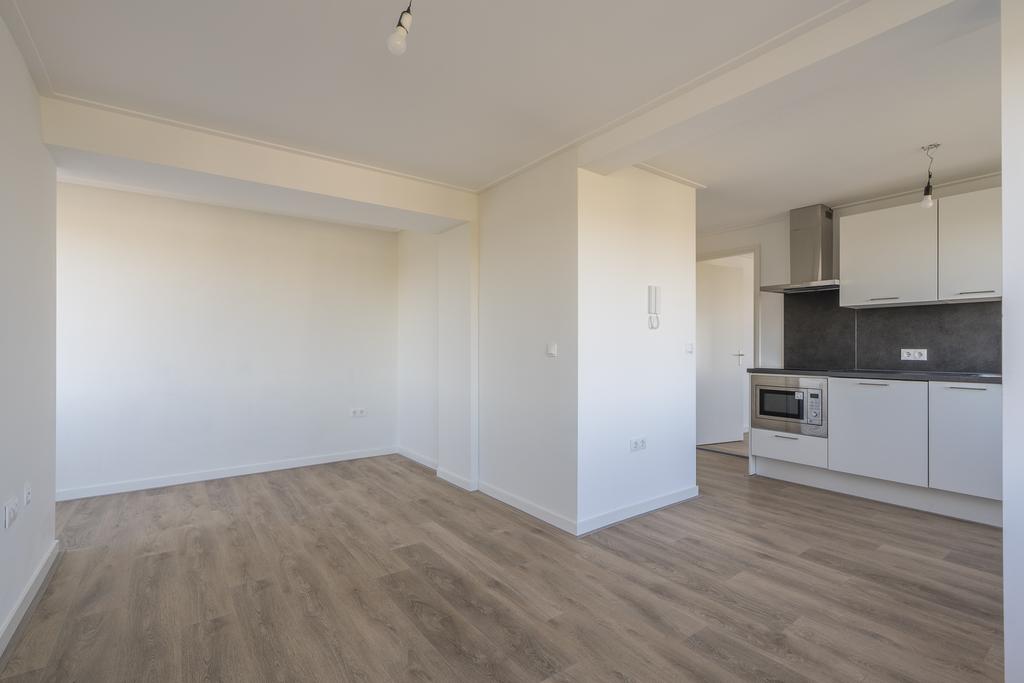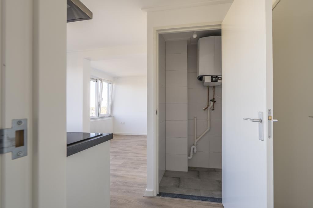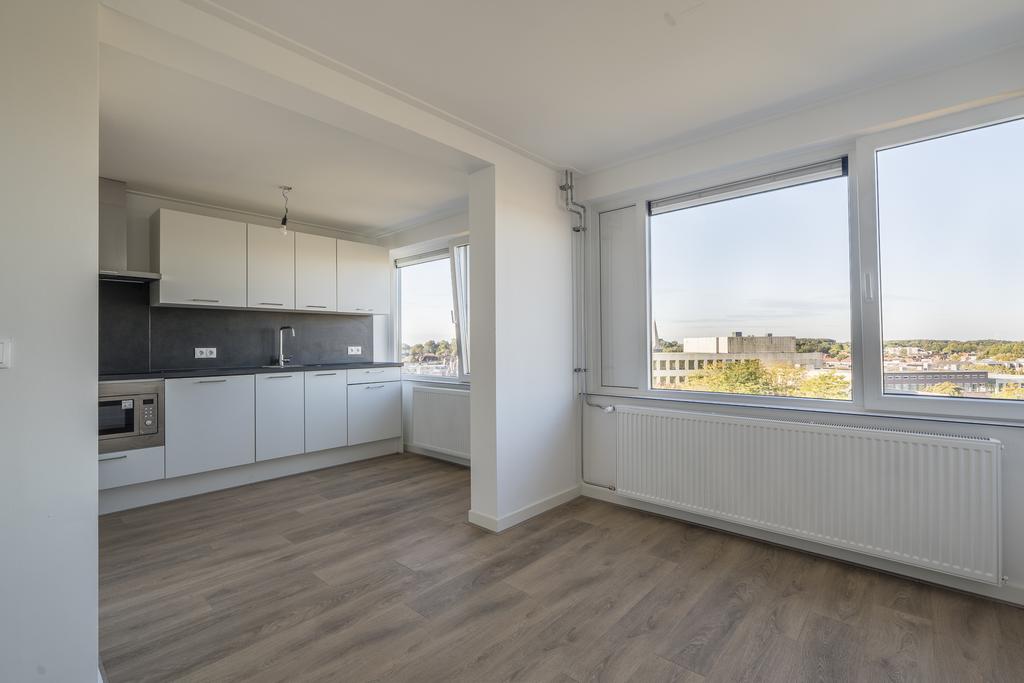 Je betreedt dit prachtige appartement via de entree die toegang biedt tot een separaat toilet en de badkamer is voorzien van douche, wastafel en vloerverwarming. De entree biedt de doorgang naar de keuken, woonkamer en de berging welke voorzien is van de wasmachineaansluiting en warmwatervoorziening. Vanuit de keuken welke beschikt over diverse inbouwapparatuur waaronder een inductiekookplaat, combimagnetron, afzuigkap en koelkast met vriesvak, bereik je de woonkamer. De woonkamer is een mooie ruimte met veel lichtinval door de grote raampartijen. Dit appartement beschikt over een slaapkamer.
