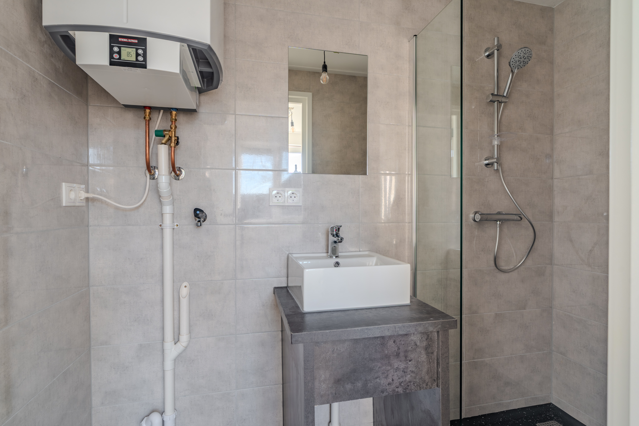 Het appartement heeft een nieuwe badkamer voorzien van wastafel, douche en vloerverwarming. Het toilet is separaat en bevindt zich bij de entree van het appartement. Het appartement beschikt over één slaapkamer.